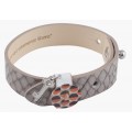 Bracciale rigido in ottone galvanizzato argento 925 con inserto in vera pelle a fantasia.